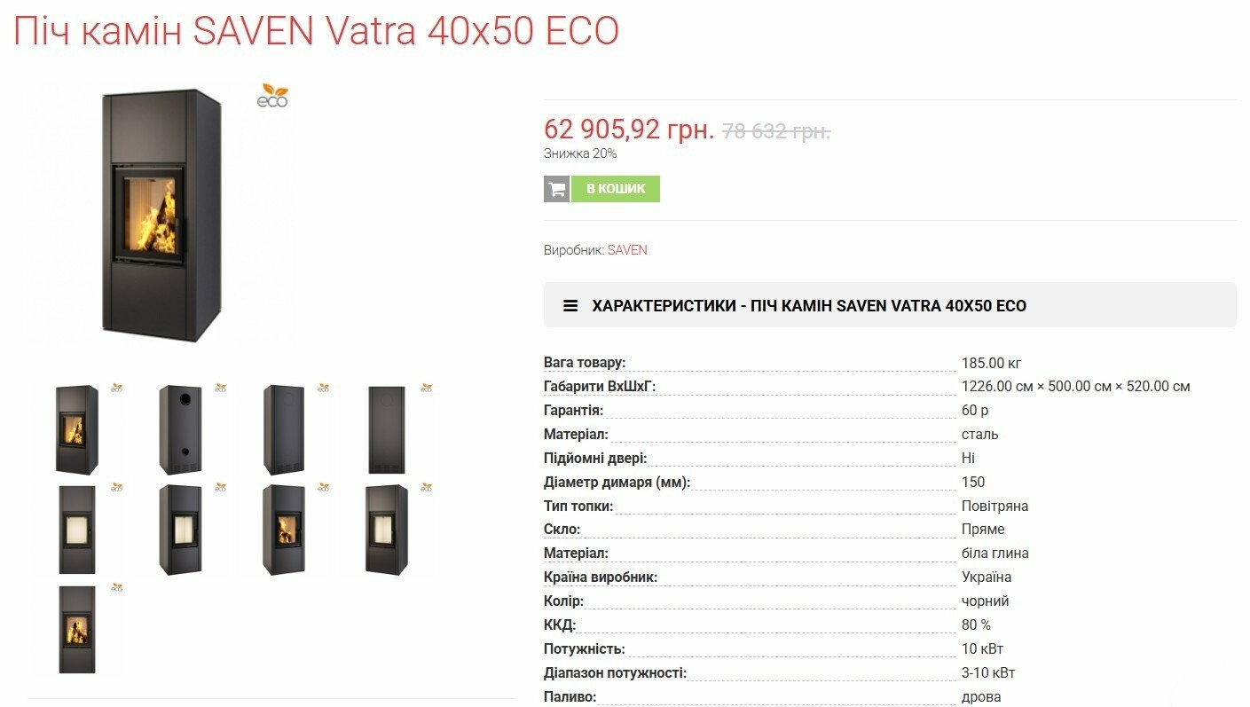 Піч камін SAVEN Vatra 40x50 ECO за зниженою ціною!