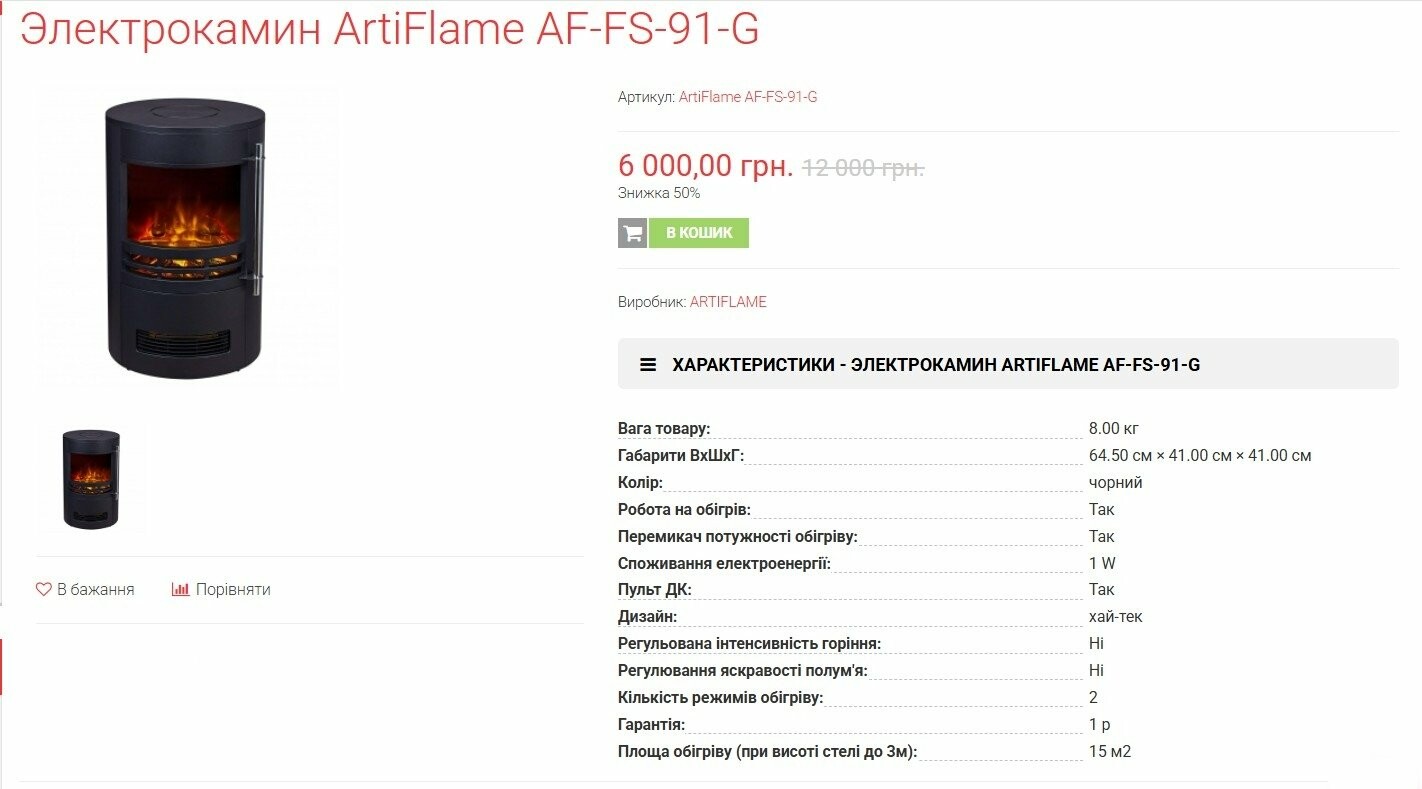 Электрокамин ArtiFlame AF-FS-91-G за зниженою ціною!